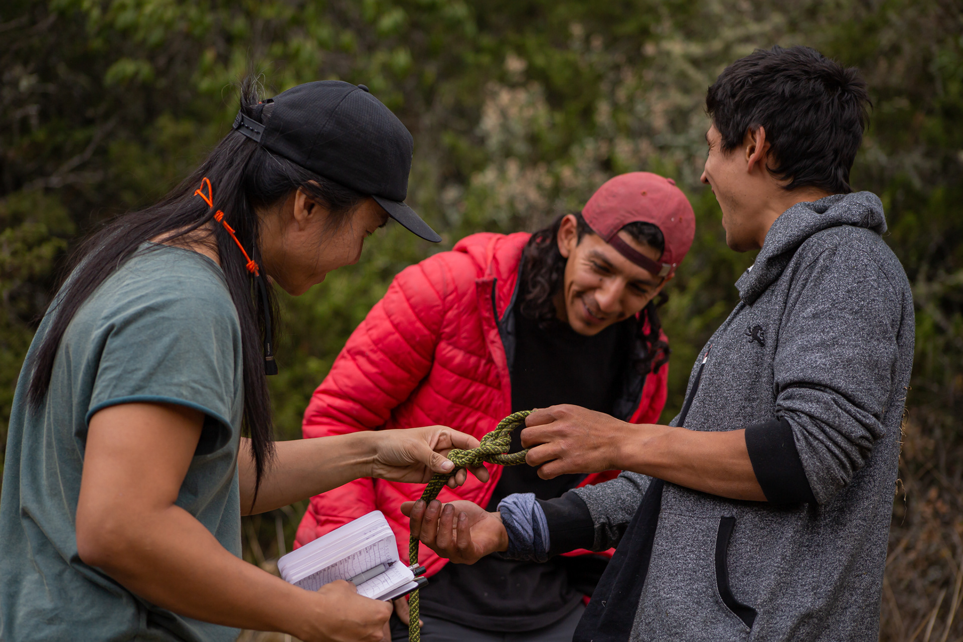 In a slackline workshop, you can expect to learn at least one of two universal and simple rigging methods: primitive and trickline. The primitive method uses 1” webbing (or similar thread) and minimal hardware to gain maximum mechanical advantage for a horizontal slackline experience. The trickline method uses a high-tension ratchet with 2” webbing for a more vertical, bouncy experience.